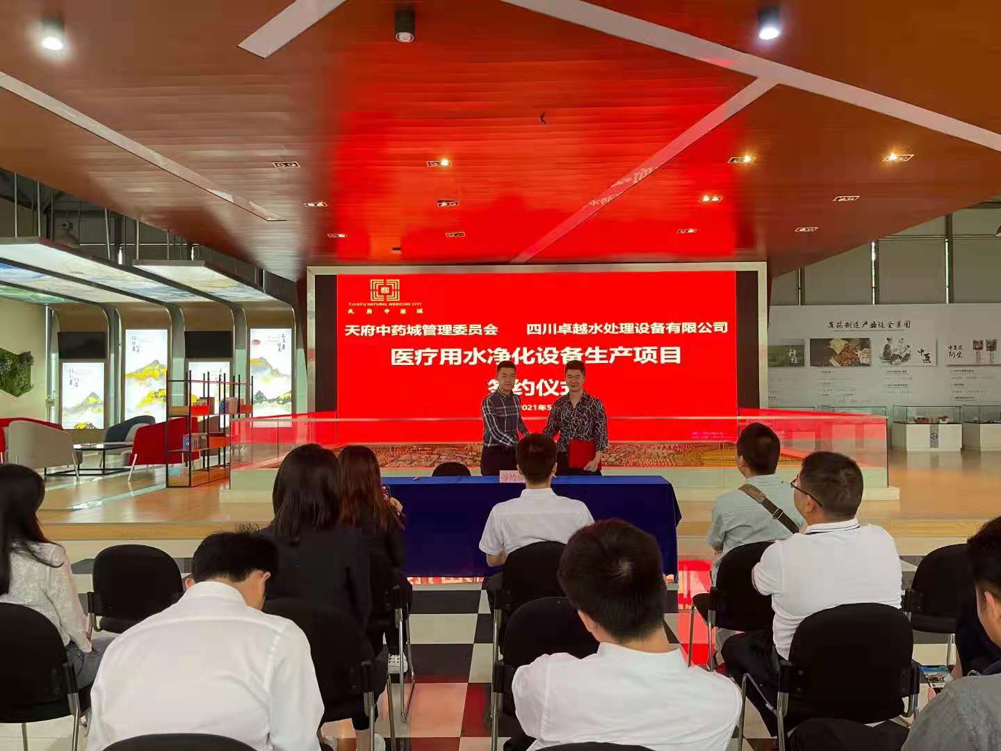 我們的新起點(diǎn)——四川卓越水處理入駐彭州天府中藥城2021年5月25日,四川卓越水處理設(shè)備有限公司彭州新工廠簽約儀式和開工慶典在天府中藥城隆重舉行。上午九點(diǎn),由彭州市天府中藥城管理委主辦的“天府中藥城管理委&四川卓越水處理設(shè)備有限公司醫(yī)療用水凈化設(shè)備生產(chǎn)項(xiàng)目”在陣陣掌聲中拉開了序幕。簽約儀式上,四川省彭州工業(yè)開發(fā)區(qū)管理委員會(huì)、彭州市中醫(yī)藥管理局和天府中藥城管理委員代表會(huì)分別致歡迎辭,表示歡迎四川卓越水處理設(shè)備有限公司入駐天府中醫(yī)院城,祝愿我們能在新的征程路上攜手并進(jìn),開創(chuàng)新的輝煌。隨后四川卓越水處...