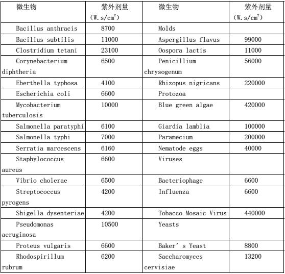 不同的微生物失活需要的Sterilization Device紫外劑量是不同的。比如破壞細(xì)菌的DNA就比讓孢子失活要容易。系統(tǒng)殺滅細(xì)菌的效率取決于紫外燈的種類、功率、照射時(shí)間、水通過(guò)紫外燈的駐留時(shí)間以及流速。比如殺滅大腸埃希氏菌(Escherichia coli)和假單胞綠銅菌(Pseudomonas aeruginosa)分析需要6600和10500W.S/cm的Sterilization Device紫外劑量。卓越超純水制備系統(tǒng)配備一款6W、7cm、254nm的紫外燈,流速固定在10L/h,在石英燈壁上測(cè)得的能量損耗為4.08mW/cm,這樣落實(shí)在細(xì)菌上的紫外燈劑量則為37600W.s/cm,這樣的功率輸出可以保證99.9%的使上述兩種細(xì)菌失活。