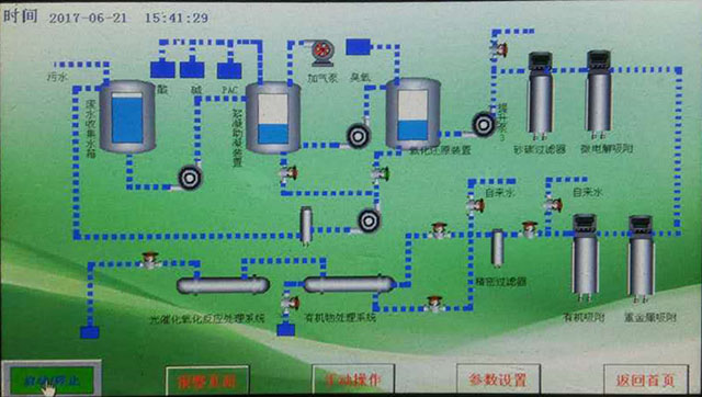 9、PLC可編程序智能控制系統(tǒng)及人機(jī)界面操作系統(tǒng):系統(tǒng)的控制采用可編程邏輯控制器(PLC)完成電氣和儀表部分的自動控制與監(jiān)控,LCD液晶顯示中文顯示、開機(jī)時設(shè)備電控系統(tǒng)自動檢測,全自動處理廢水、針對不同廢水的成分和濃度,控制系統(tǒng)自動進(jìn)行計算然后按比例進(jìn)行自動投放藥品,更加科學(xué)化和合理化,詳細(xì)功能如下: