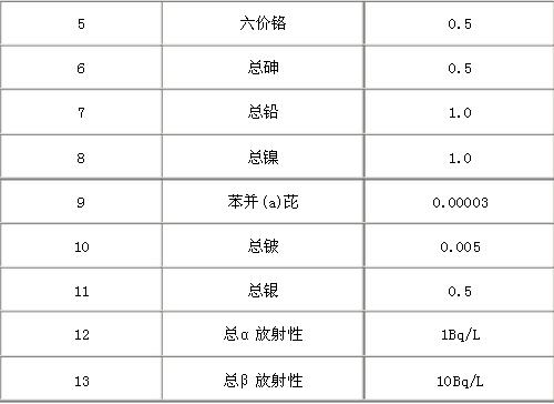表1 第一類污染物最高允許排放濃度 單位:mg/l