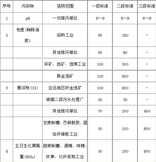 表2 第二類污染物最高允許排放濃度 (1997年12月31日之前建設的單位) 單位:mg/L
