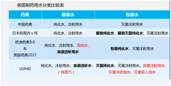 制藥用水分類
