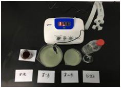 實(shí)驗(yàn)表明該實(shí)驗(yàn)室廢水中COD值高達(dá)1500mg/L左右、總?cè)芙庑怨腆w含量也高達(dá)10000us/cm以上,已經(jīng)超出儀表的檢測范圍值、濁度SS值高達(dá)980mg/L。如圖所示通過以下四個(gè)小試步驟。